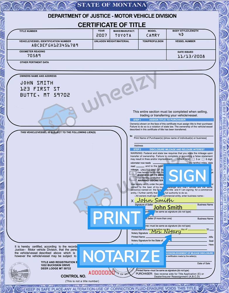 How to Sign Your Car Title in Montana. Including DMV Title Sample Picture